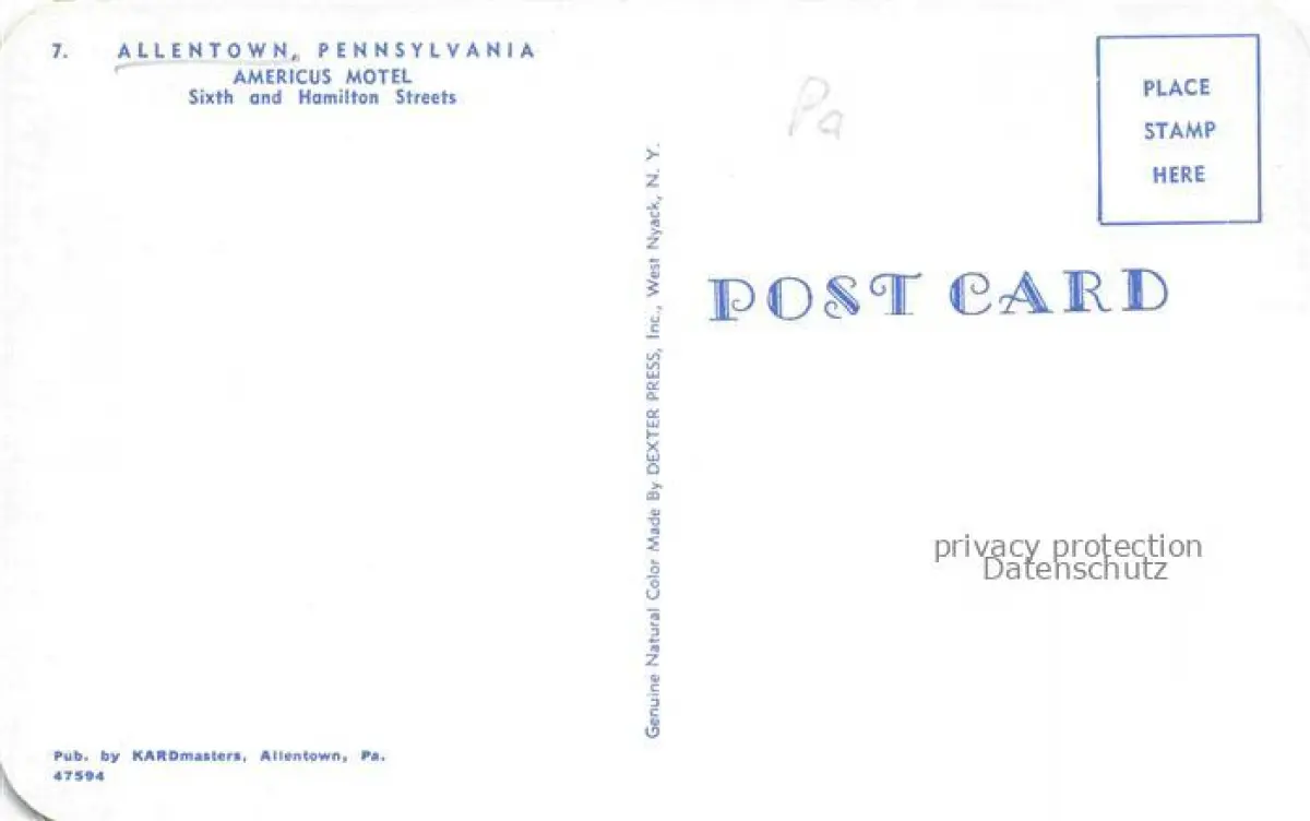 Allentown Pennsylvania USA Americus Motel Sixth and Hamilton Streets postalisch nicht gelaufen Erhaltung siehe scans [WerneD78]