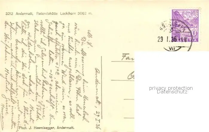 Andermatt Rotondohuette Leckihorn Andermatt postalisch gelaufen 1936 Erhaltung siehe scans [NatalD47] NataID47