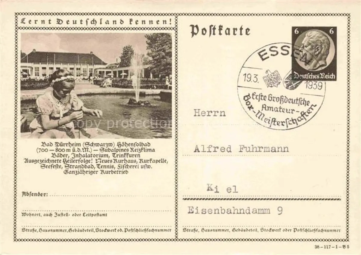 alte Postkarte Bad Duerrheim BW Kurpark Springbrunnen postalisch gelaufen Ganzsache (eingedruckte Briefmarke) Erhaltung siehe scans [WerneD78]