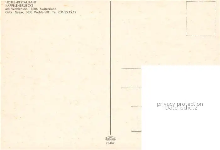 Bern_BE Hotel Restaurant Kapellenbruecke am Wohlensee Bern_BE postalisch nicht gelaufen nach 1965 Erhaltung siehe scans [WerneD78] WernPID7