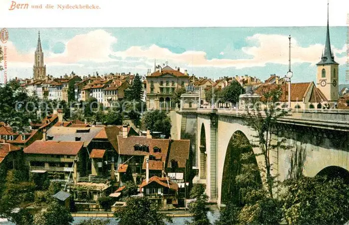 Bern_BE Stadtbild mit Nydeckbruecke Bern_BE postalisch nicht gelaufen bis 1920 Erhaltung siehe scans [FriedD77] Frierer