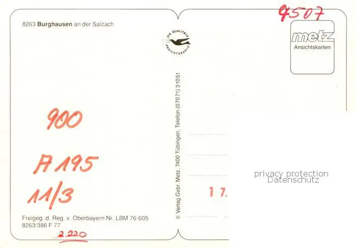 Burghausen_Salzach Fliegeraufnahme Burghausen Salzach postalisch nicht gelaufen nach 1965 Erhaltung siehe scans [WerneD78] WernPID7
