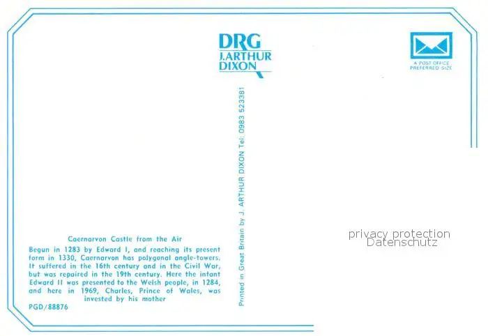 Caernarvon Castle from the air Caernarvon postalisch nicht gelaufen nach 1965 Erhaltung siehe scans [FriedD77] Frierer