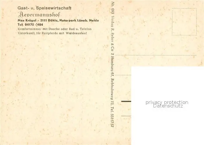 Doehle Gasthaus Restaurant Aevermannshof Fremdenzimmer Doehle postalisch nicht gelaufen nach 1965 Erhaltung siehe scans [FriedD77] Frierer