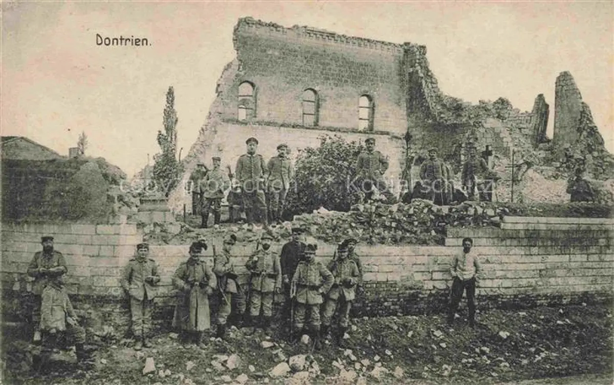 carte postale Dontrien REIMS 51 Marne Ruines Grande Guerre Truemmer 1. Weltkrieg postalisch gelaufen Feldpoststation (Stempel) Erhaltung siehe scans [FriedD77]