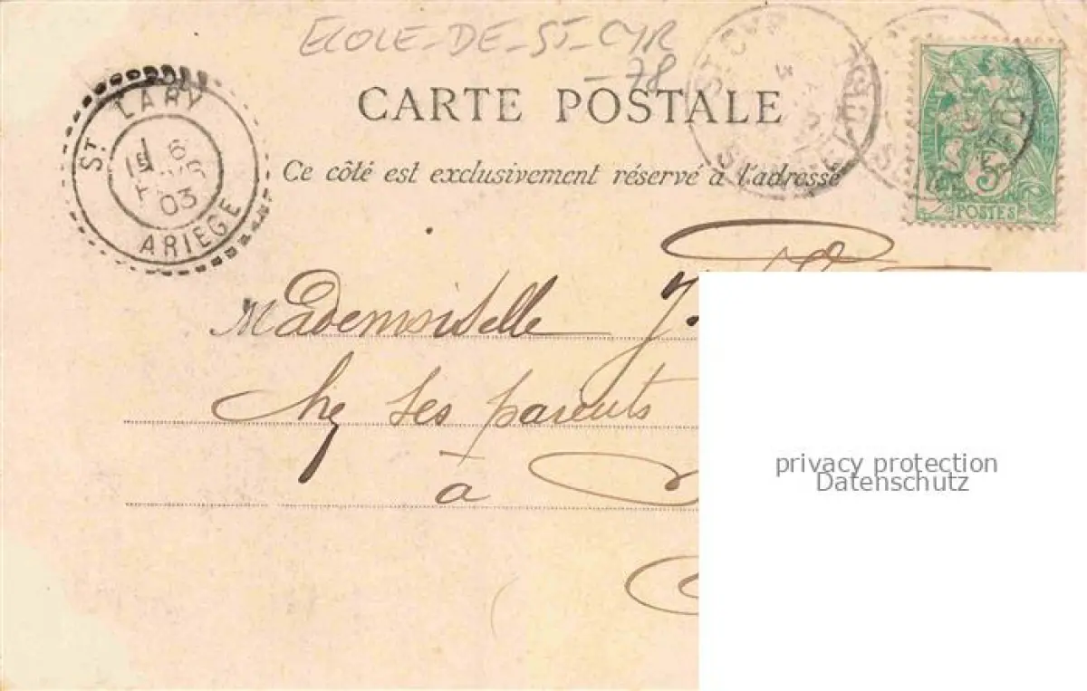 alte Postkarte Ecole de St-Cyr 78 Yvelines Triomphe 1902 postalisch gelaufen Erhaltung siehe scans [FriedD77]