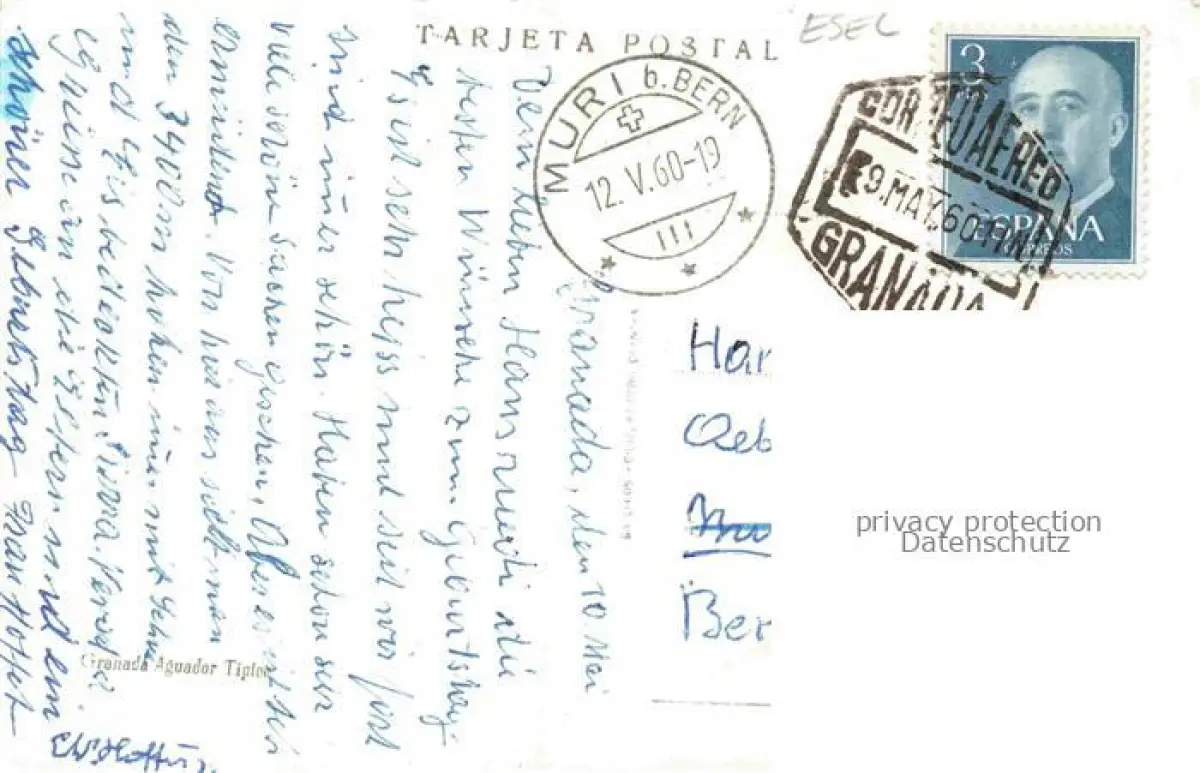Esel Donkey Ane Burro Asno Asino-- Granada Aguador Tipioo postalisch gelaufen Erhaltung siehe scans [IrynaD87] alte Postkarte Iryn Katcode 22540000001700