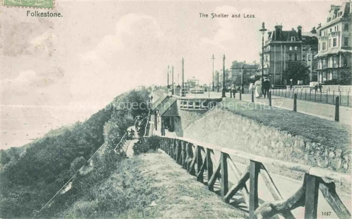 14081414 FOLKESTONE Shepway Kent UK The Shelter and Leas postalisch gelaufen Erhaltung siehe scans [FriedD77] old postcard Frie Katcode 11570UKJ4J42UL
