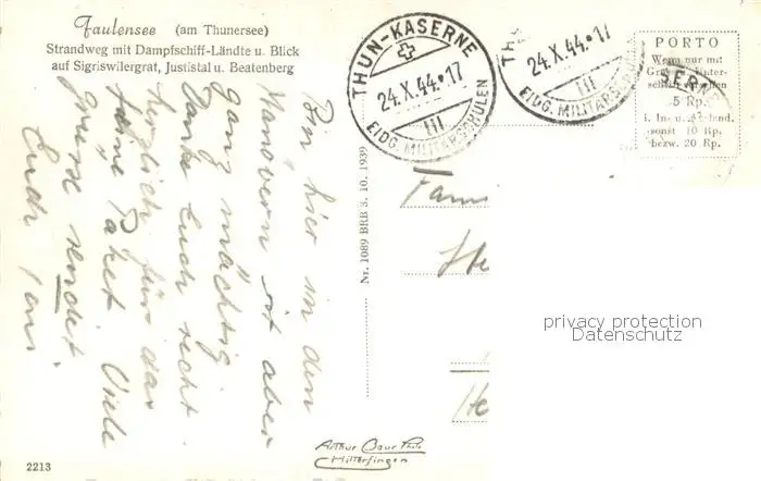 Faulensee_Thunersee Strandweg mit Dampfschiff Laende und Blick auf Sigriswilergrat Justistal und Beatenberg Faulensee_Thunersee postalisch gelaufen 1944 Erhaltung siehe scans [WerneD78] WernPID7