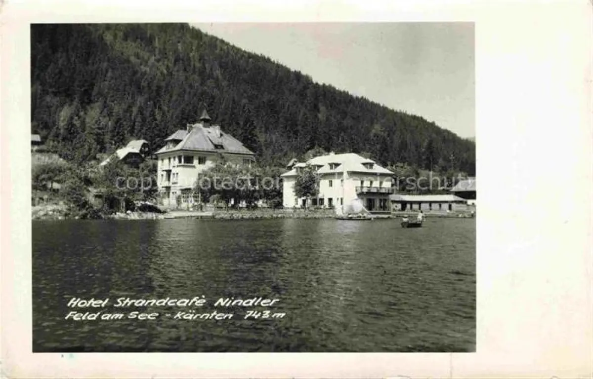 Feld am See Villach Kaernten AT Hotel Strandcafe Nindler postalisch gelaufen Erhaltung siehe scans [WerneD78] alte Postkarte Wern Katcode 11390211020708