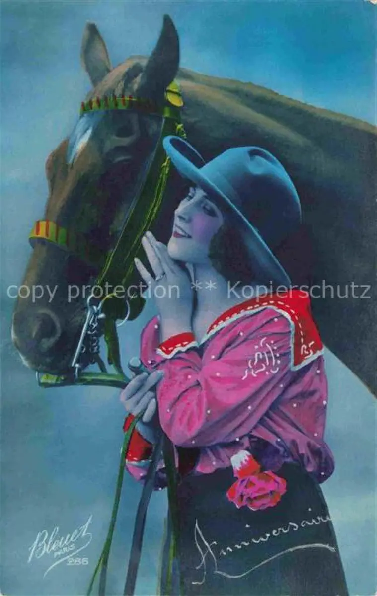74105380 Foto Bleuet Paris Nr. 186 Frau Pferd Hut postalisch nicht gelaufen Erhaltung siehe scans [IrynaD87] Iryn Katcode 22060000000600