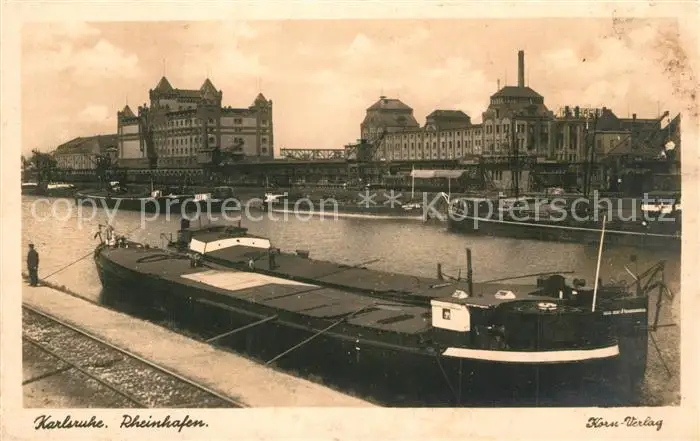 Frachter_Binnenschifffahrt Karlsruhe Rheinhafen Frachter postalisch nicht gelaufen 1921-1965 Erhaltung siehe scans [PaolaD17] PaolPID1