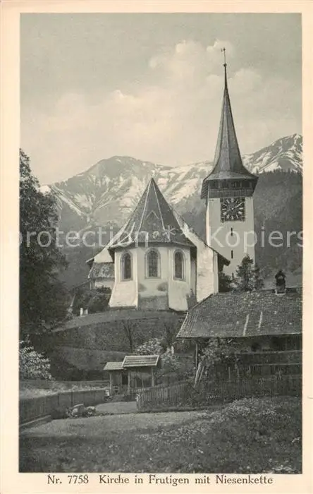 AK / Ansichtskarte Frutigen_BE Kirche mit Niesenkette Frutigen BE