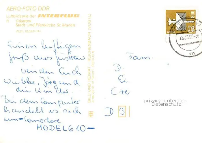 Guestrow_Mecklenburg_Vorpommern Stadt und Pfarrkirche St Marien Fliegeraufnahme Guestrow_Mecklenburg postalisch gelaufen nach 1965 Erhaltung siehe scans [WerneD78] WernPID7