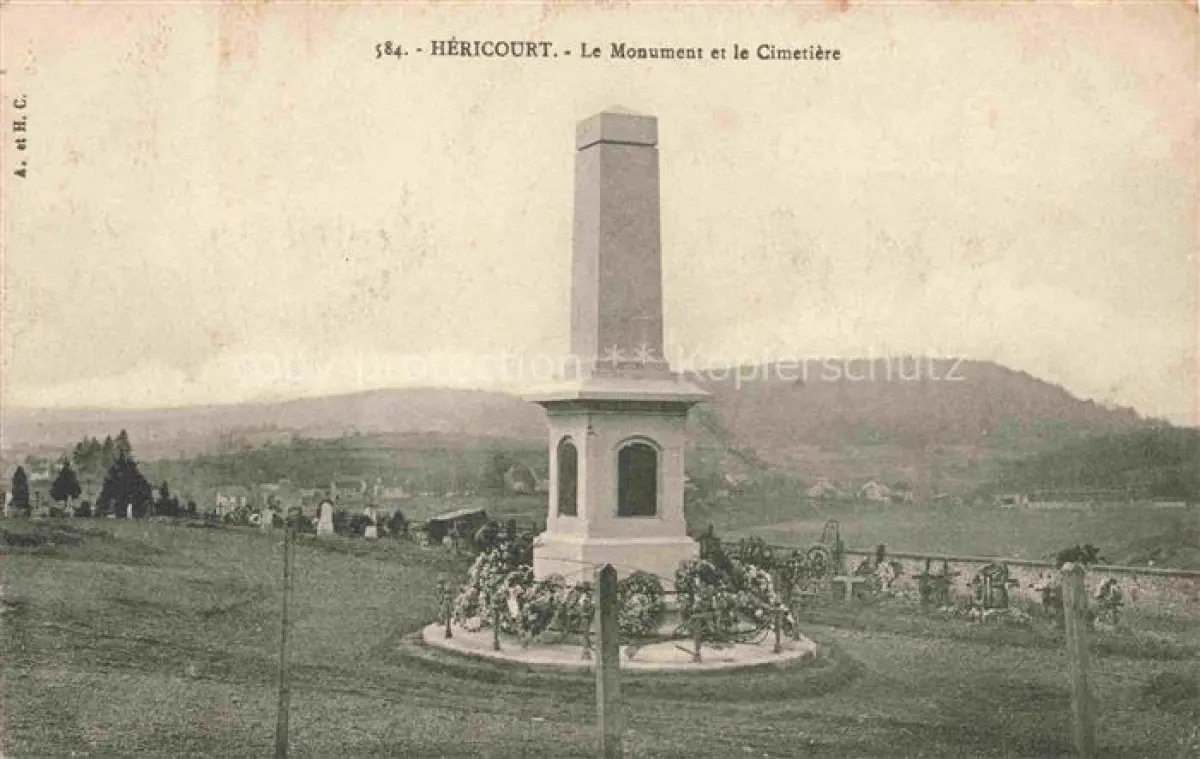 carte postale Hericourt Lure 70 Haute-Saone Le Monument et le Cimetière postalisch gelaufen Erhaltung siehe scans [FriedD77]
