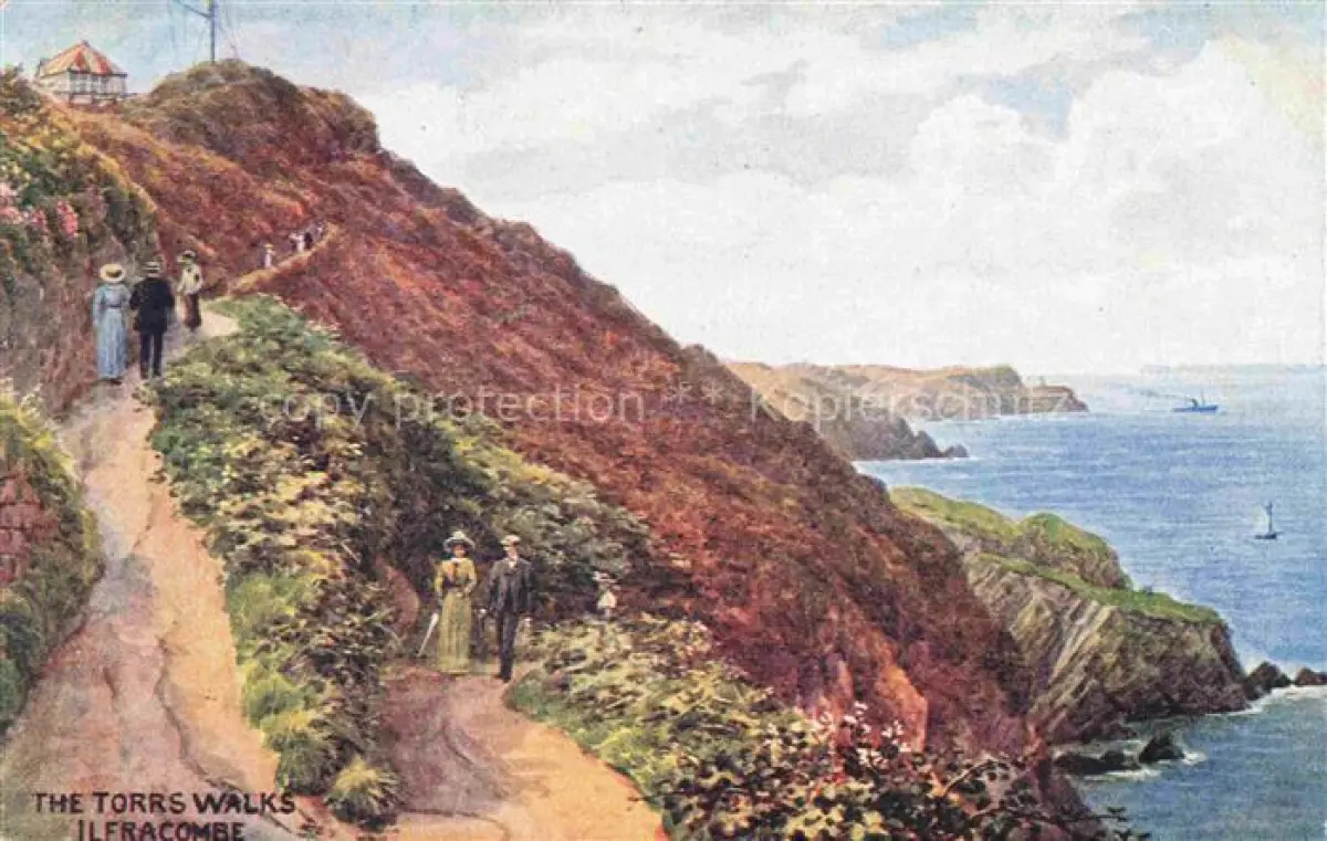 Ilfracombe North Devon UK The Torrs Walks Coast Water Colour Drawing Kuenstlerkarte postalisch nicht gelaufen Erhaltung siehe scans [FriedD77]
