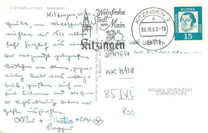 Kitzingen_Main Marktplatz Brunnen Kitzingen Main postalisch gelaufen 1963 Erhaltung siehe scans [FriedD77] Frierer