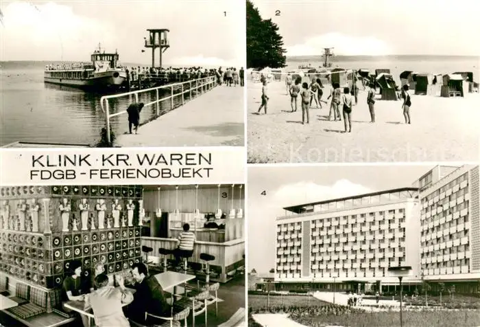 AK / Ansichtskarte Klink_Waren FDGB Ferienobjekt An der Mole Badestrand Dachcafe FDGB Erholungsheim Herbert Warnke Klink Waren