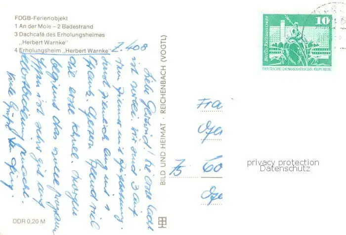 Klink_Waren FDGB Ferienobjekt An der Mole Badestrand Dachcafe FDGB Erholungsheim Herbert Warnke Klink Waren postalisch gelaufen nach 1965 Erhaltung siehe scans [FriedD77] Frierer
