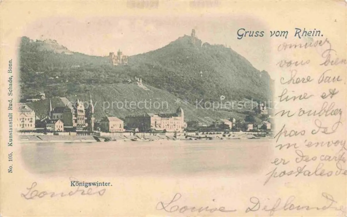 alte Postkarte Koenigswinter Rhein Partie am Rhein postalisch gelaufen Erhaltung siehe scans [WerneD78]