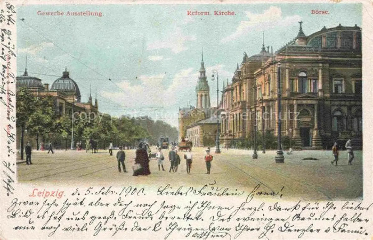 alte Postkarte LEIPZIG Sachsen Gewerbe-Ausstellung Reformierte Kirche Boerse postalisch gelaufen Erhaltung siehe scans [FriedD77]