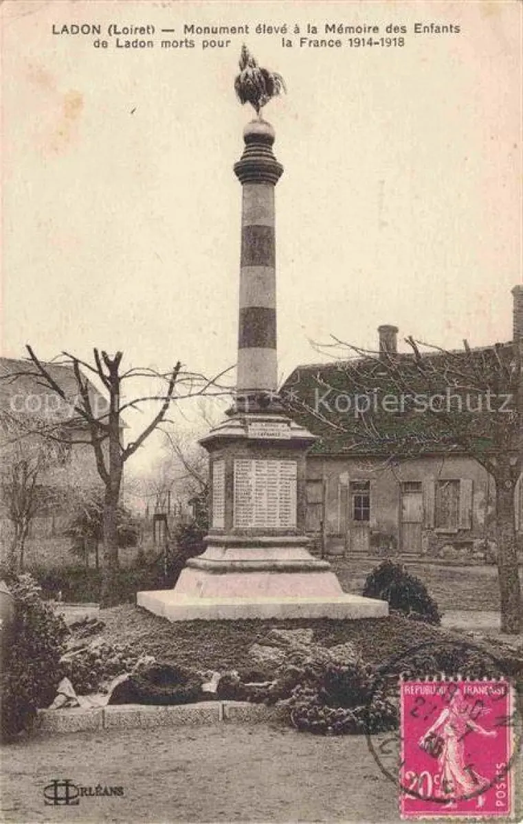 14085570 Ladon Montargis 45 Loiret Monument aux morts postalisch gelaufen Erhaltung siehe scans [FriedD77] carte postale Frie Katcode 11170045145178