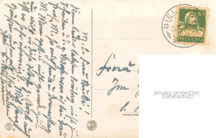Ligerz Motiv mit Kirche St. Petersinsel Alpenpanorama Ligerz postalisch gelaufen 1921 Erhaltung siehe scans [FriedD77] Frierer