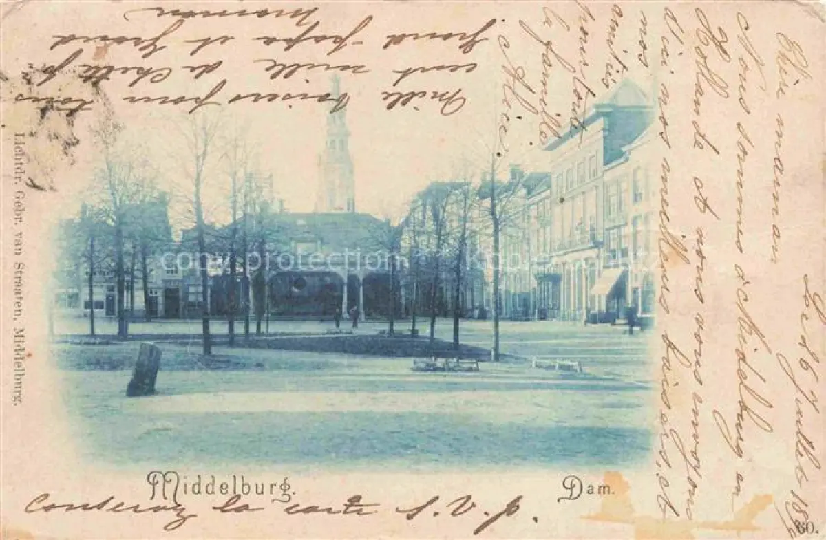 alte Postkarte MIDDELBURG Zeeland NL Dam postalisch gelaufen Erhaltung siehe scans [WerneD78]