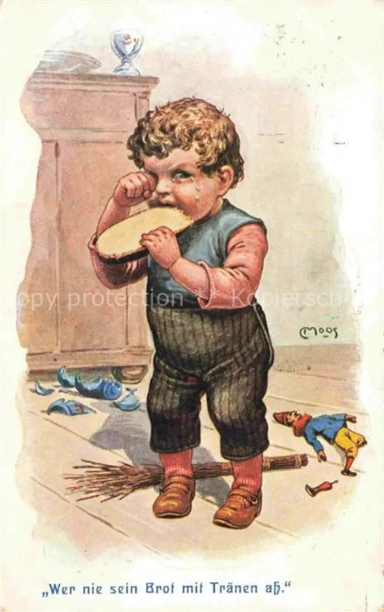 AK / Ansichtskarte MOOS__Carl_(1878 1959)_Kuenstlerlitho_Schweiz Kind Brot Spielzeug