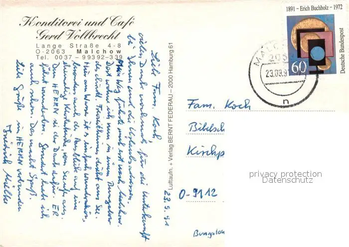 Malchow Fliegeraufnahme Malchow postalisch gelaufen 1991 Erhaltung siehe scans [FriedD77] Frierer