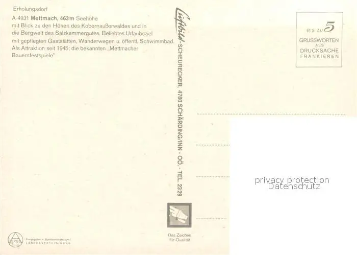 Mettmach Fliegeraufnahme Kobernausserwald Mettmach postalisch nicht gelaufen nach 1965 Erhaltung siehe scans [LiesaD40] LiesID40