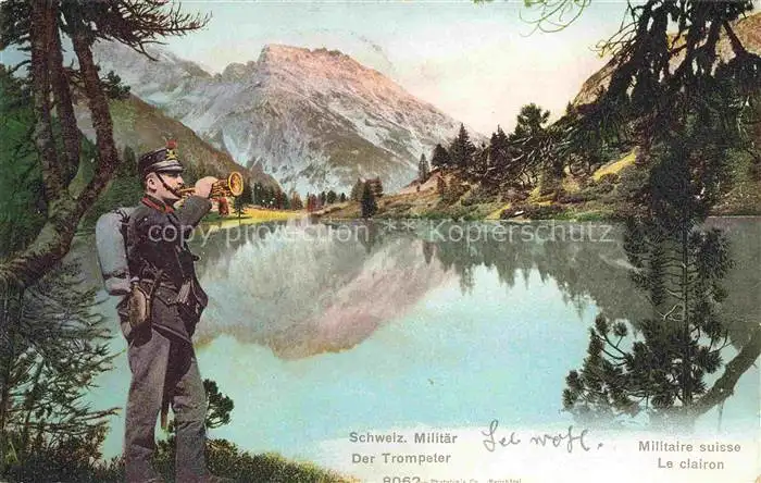 Militaria_Schweiz Trompeter clairon Militaria Schweiz postalisch gelaufen 1907 Erhaltung siehe scans [SanaeD93] SanaID93