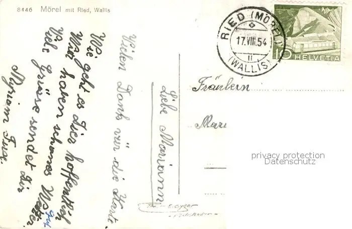 Moerel_VS mit Ried im Wallis postalisch gelaufen 1954 Erhaltung siehe scans [WerneD78] WernPID7