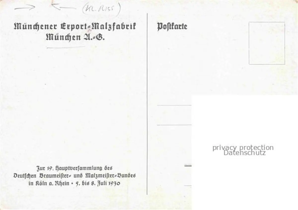 MueNCHEN Bayern Original-Gemaelde Muenchener Export-Malzfabrik zur 19. Hauptversammlung des Deutschen Braumeister- und Malzmeister-Bundes in Koeln Kuenstlerkarte postalisch nicht gelaufen Erhaltung siehe scans [FriedD77] Frie Katcode 11110009162000