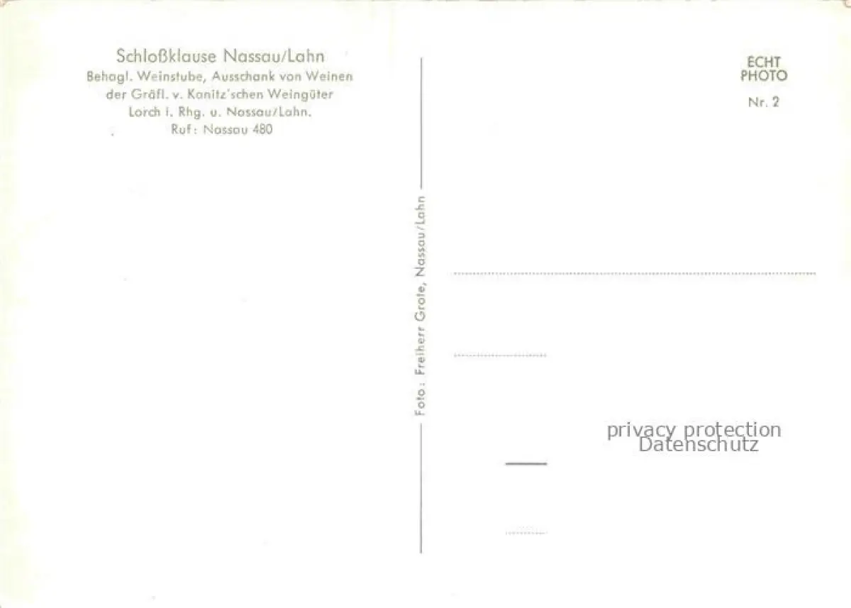 Nassau Lahn Schlossklause Weinstube postalisch nicht gelaufen Erhaltung siehe scans [WerneD78]