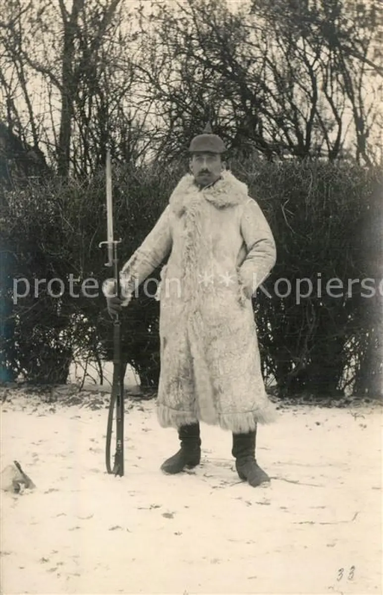 AK / Ansichtskarte Pickelhaube Militaria WK1 Foto Soldat Pelzmantel Ostfront Bajonette
