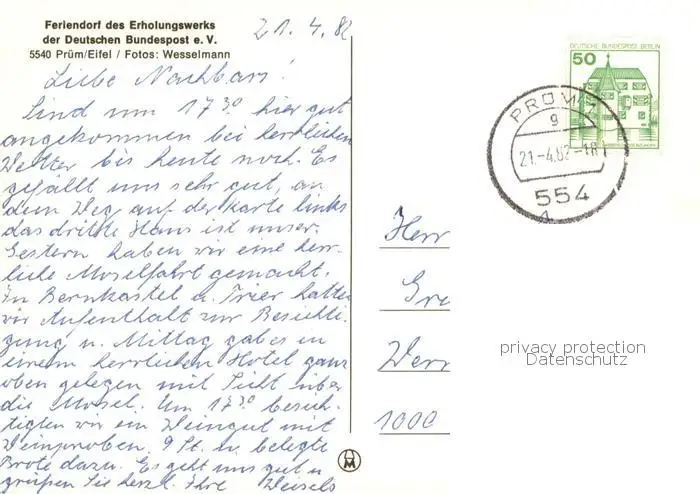Pruem_Eifel Feriendorf der Deutschen Bundespost Pruem_Eifel postalisch gelaufen 1982 Erhaltung siehe scans [FriedD77] Frierer
