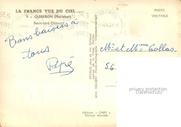 Quiberon_Morbihan Boulevard Chanard vue aérienne Quiberon Morbihan postalisch gelaufen 1954 Erhaltung siehe scans [FriedD77] Frierer