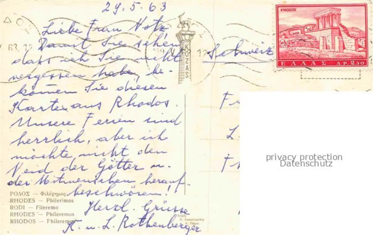 old postcard RHODOS Rhodes Greece Phileremos postalisch gelaufen Erhaltung siehe scans [WerneD78]