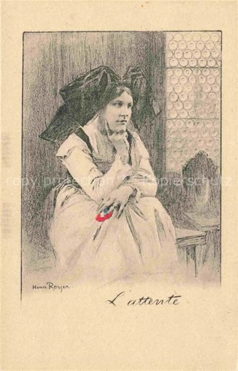 14101533 ROYER Henri (1869-1938) Kuenstlerkarte L'attente Trachten Nancy postalisch nicht gelaufen Erhaltung siehe scans [SanaeD93] Sana Katcode 22240000003200