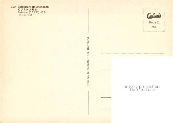 Reichenbach_Waldbronn Luftkurort Kurhaus Restaurant Reichenbach Waldbronn postalisch nicht gelaufen 1971 Erhaltung siehe scans [FriedD77] Frierer