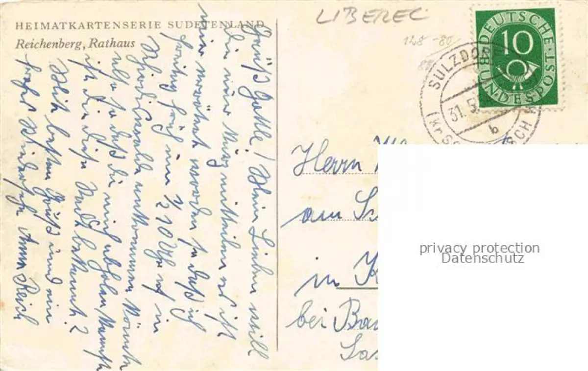 alte Postkarte Reichenberg LIBEREC Boehmen CZ Rathaus postalisch gelaufen Erhaltung siehe scans [WerneD78]