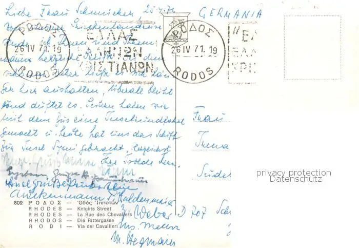 Rhodos_Rhodes_aegaeis Rittergasse Rhodos_Rhodes_aegaeis postalisch gelaufen 1971 Erhaltung siehe scans [WerneD78] WernPID7
