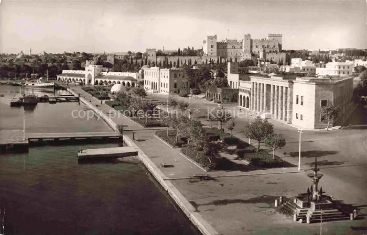 old postcard Rodos Rhodes Rhodos Greece Partie am Hafen Promenade postalisch gelaufen Erhaltung siehe scans [FriedD77]