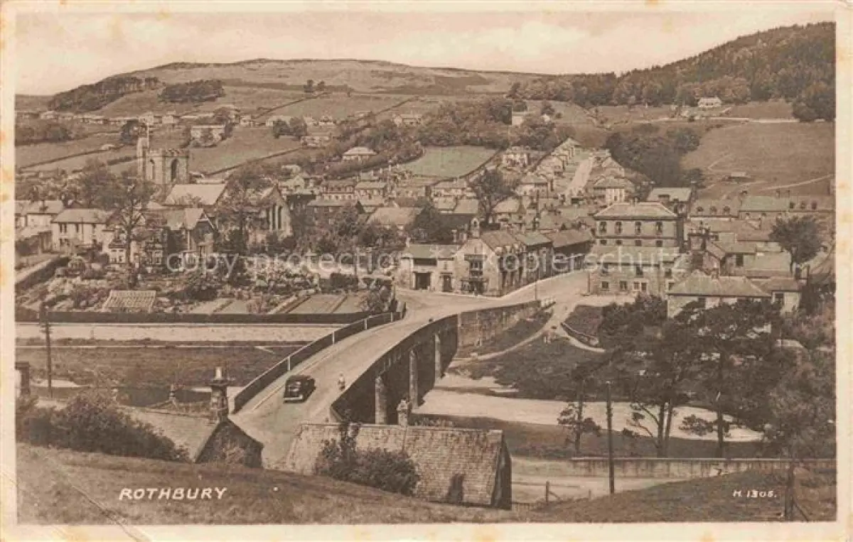 alte Postkarte Rothbury South Rural Alnwick Northumberland UK Panorama postalisch gelaufen Erhaltung siehe scans [FriedD77]