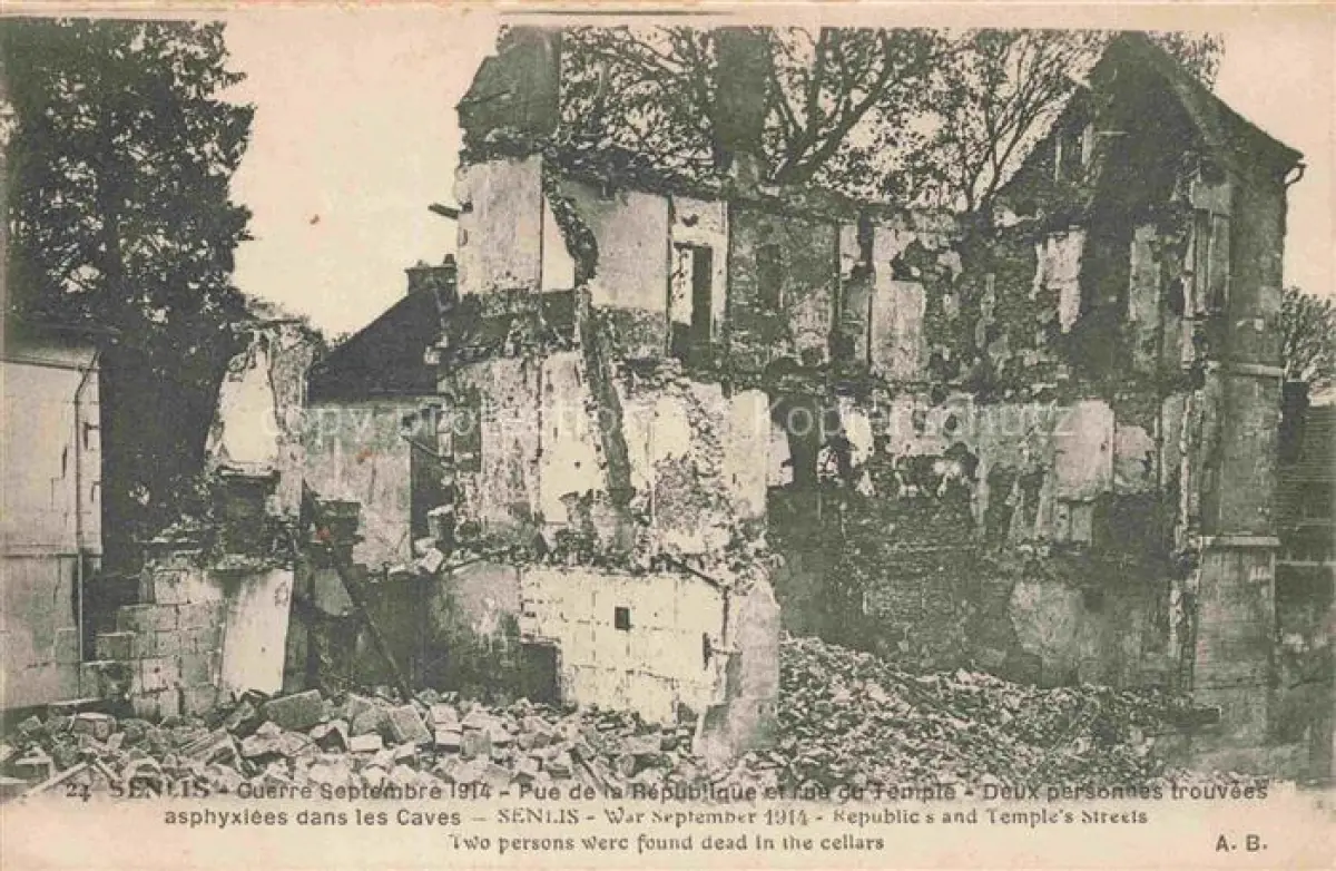 SENLIS 60 Oise War Sept 1914 Republics and Temples Streets Two persons werc found dead in the cellars postalisch nicht gelaufen Erhaltung siehe scans [WerneD78]
