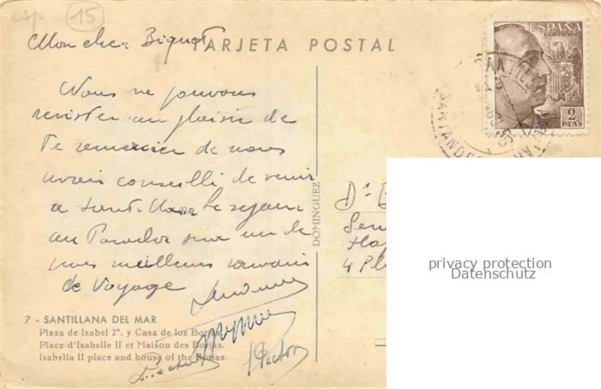 14096849 Santillana del Mar SANTANDER Cantabria ES Plaza de Isabel 2e y Casa de los Borjas postalisch gelaufen Erhaltung siehe scans [FriedD77] old postcard Frie Katcode 11510