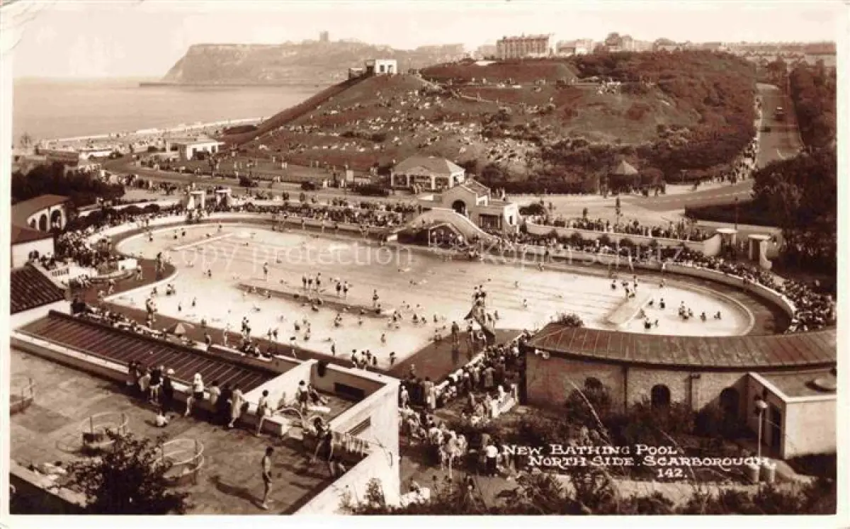 old postcard Scarborough Yorkshire UK New Bathing Pool postalisch gelaufen Erhaltung siehe scans [FriedD77]