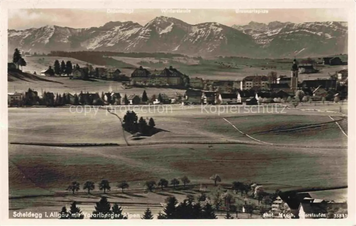 alte Postkarte Scheidegg Allgaeu Bayern mit Vorarlberger Bergen postalisch gelaufen Erhaltung siehe scans [WerneD78]