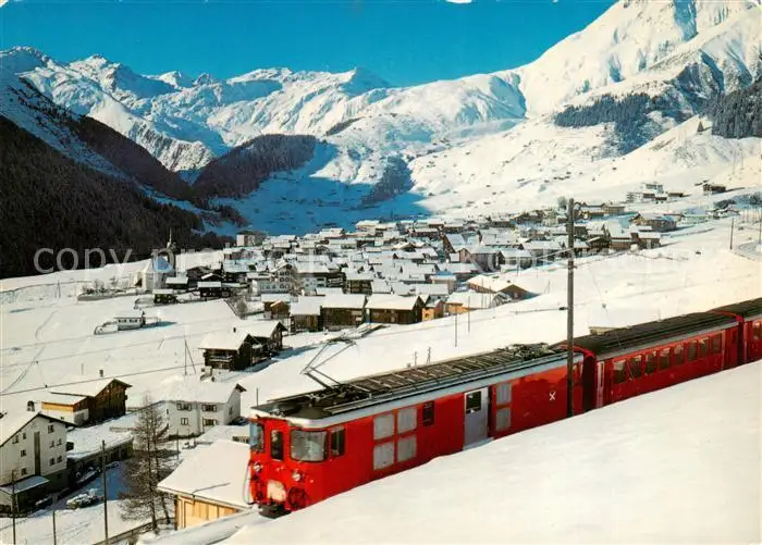 AK / Ansichtskarte Sedrun GEsamtansicht geg. Rueras u. d. Skigebiet v. Milez m. Bahn Winter Sedrun